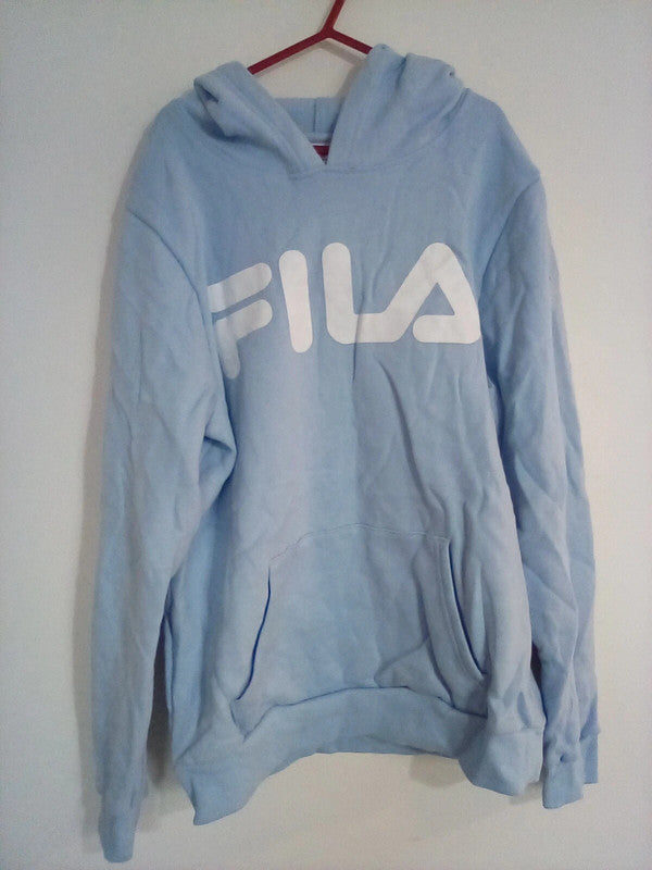 This 14-year-old baby blue FILA hoody is perfect for keeping your child warm and stylish. Made with comfortable materials, it provides a snug fit and a modern, trendy look. The perfect addition to any wardrobe.