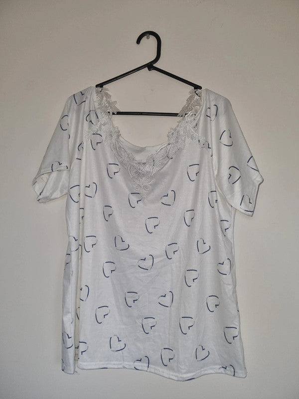 2XL WOMENS WHITE/BLUE HEARTS T-SHIRT