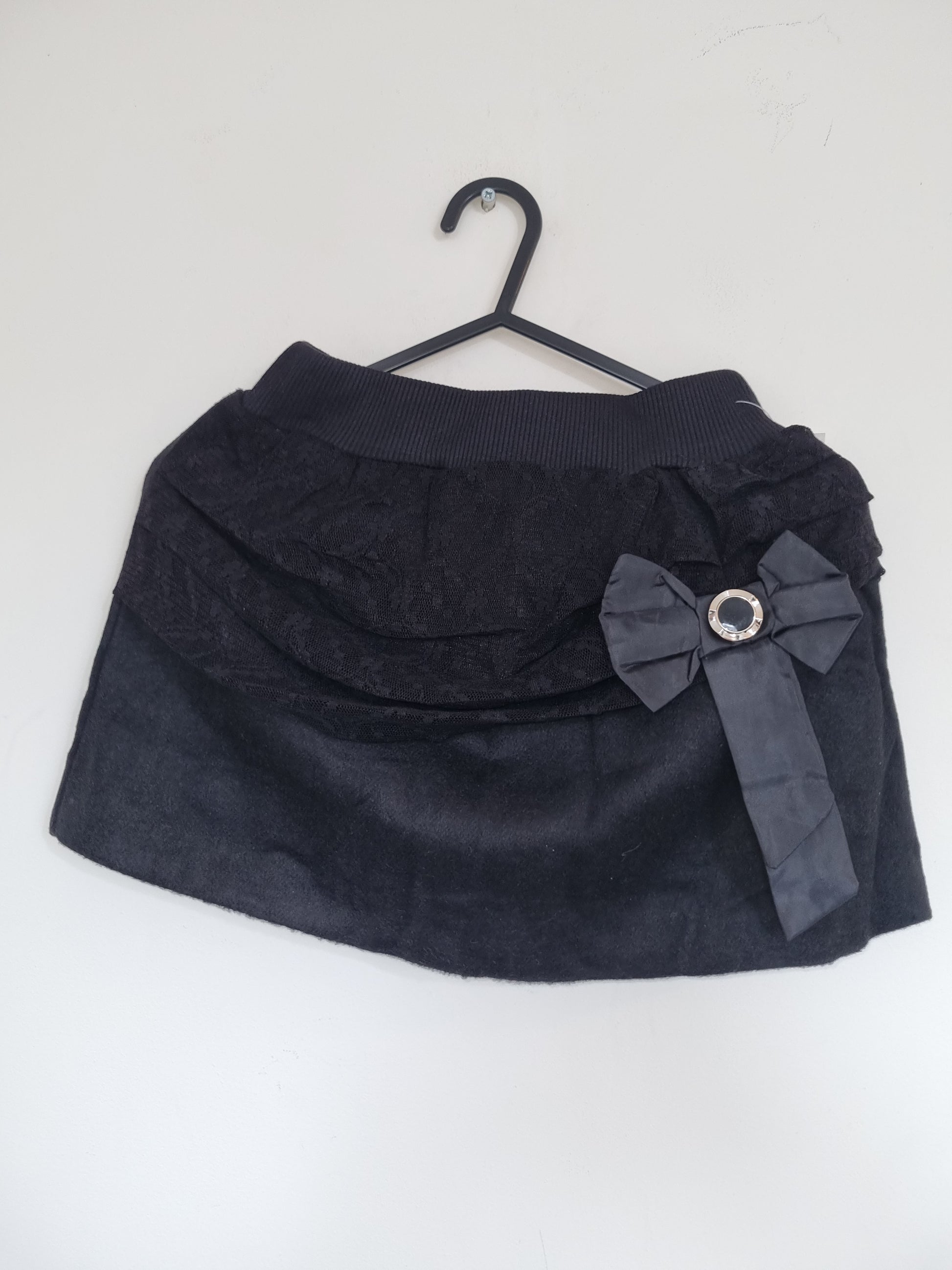 This girl's black skirt features a charming bow and soft fabric for a comfortable fit. Perfect for any occasion, this skirt is a must-have for your little one's wardrobe. Made from high-quality materials, it offers both style and comfort in one.