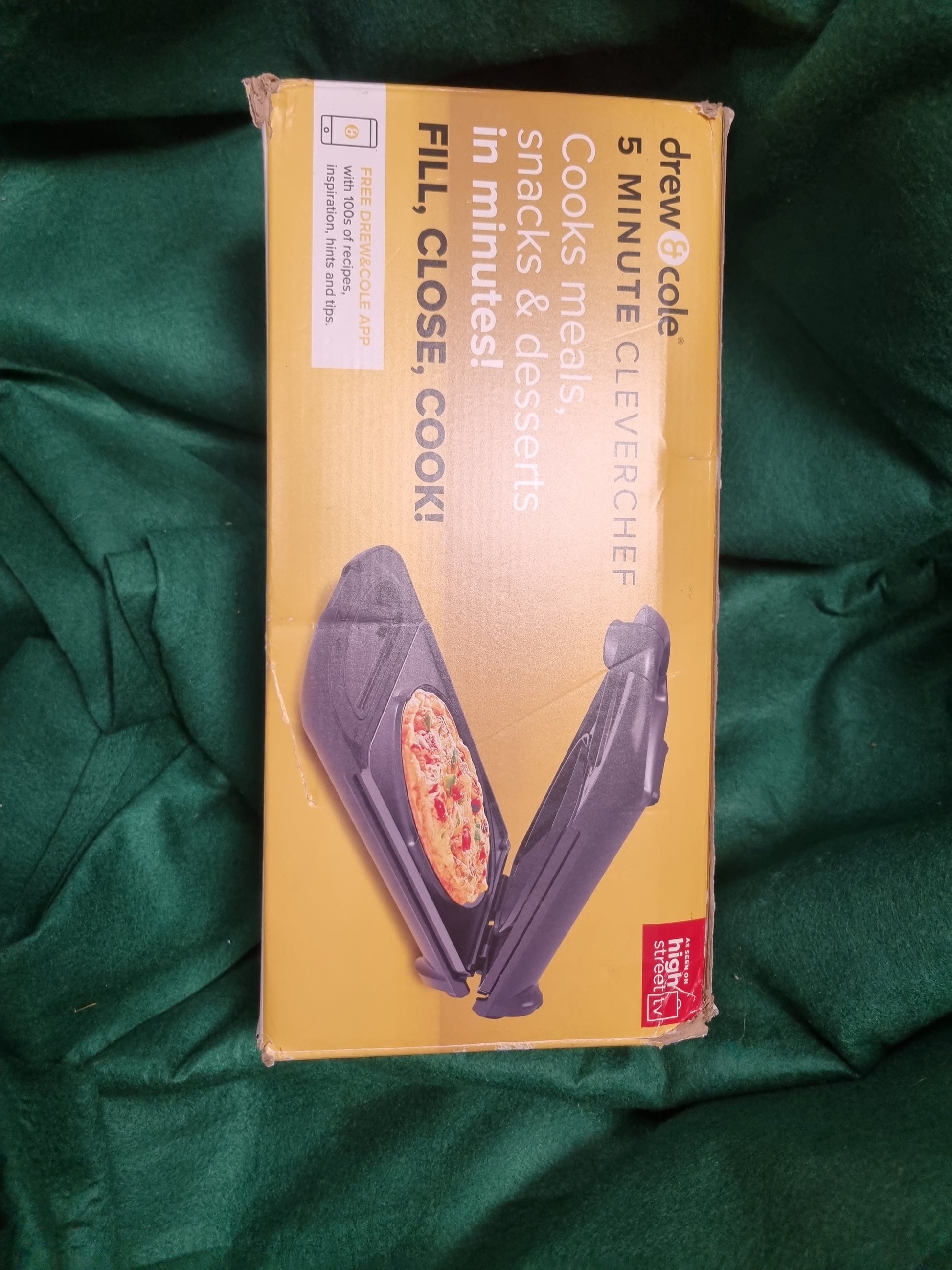 ip up mouth-watering meals in minutes with this Drew&Cole CleverChef. Its dual-sided cooking technology cooks from both the top and bottom. That means your grub cooks faster and you don't have to flip it half way through. It's super versatile too. From omelettes and toasties to pizzas and desserts, it can do it all in double quick time. And its non-stick surface means it's easy to clean when you're done. Just wipe away any dirt with soapy water and it'll be ready for your next creation.