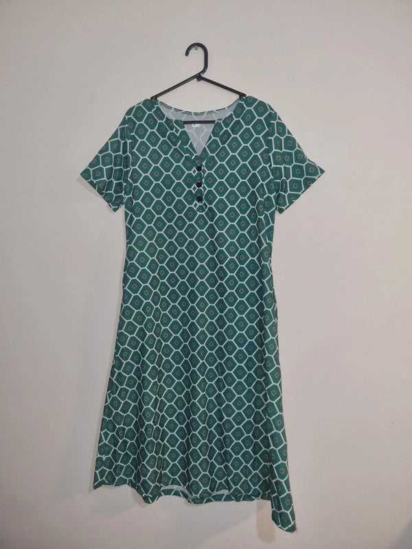 MEDIUM GREEN/WHITE SYMETRICAL DRESS