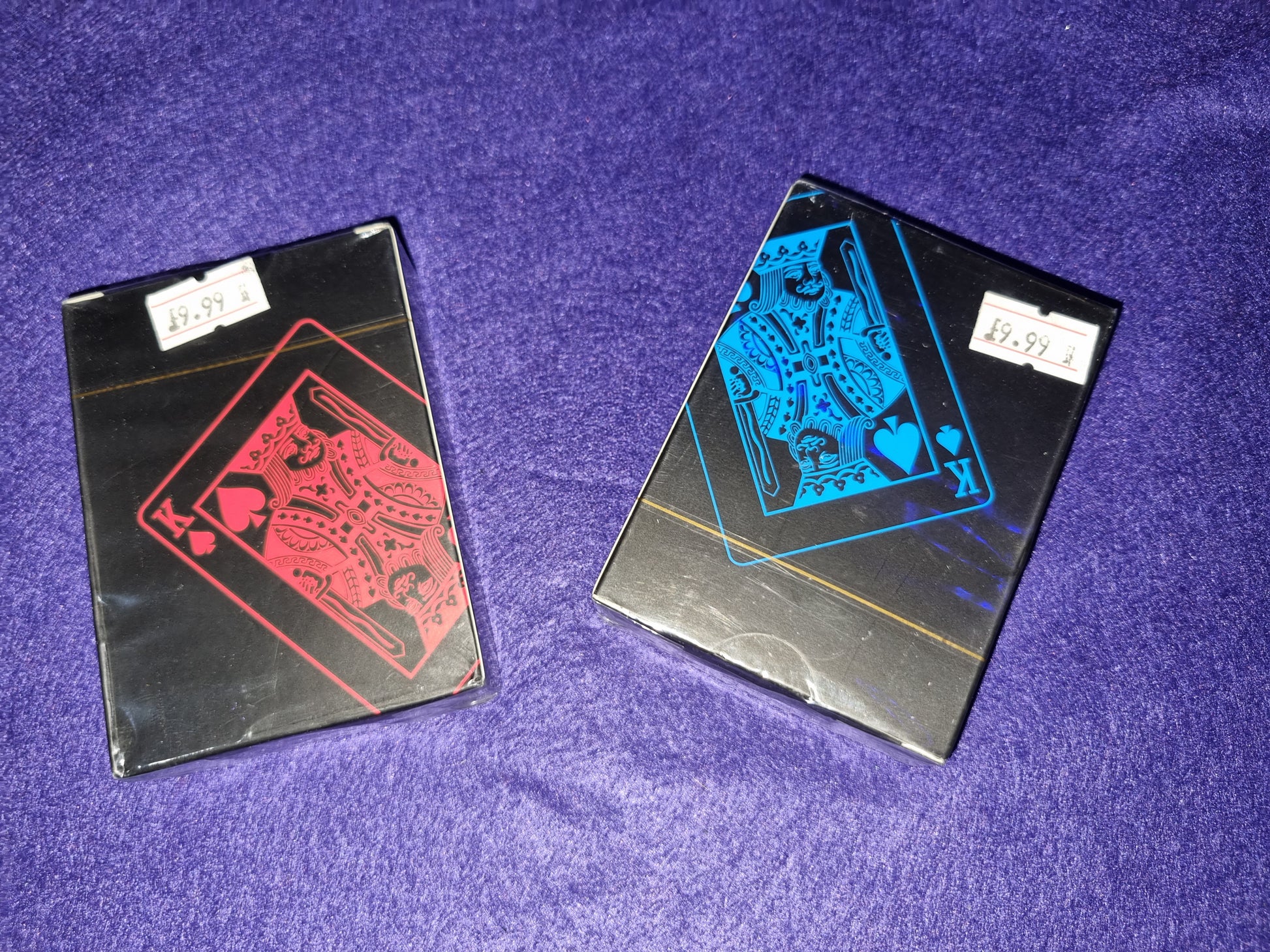 These plastic polymer playing cards come in a great clear polymer with red printed. These are much more durable and easier to clean then your standard playing cards perfect for drinking games.