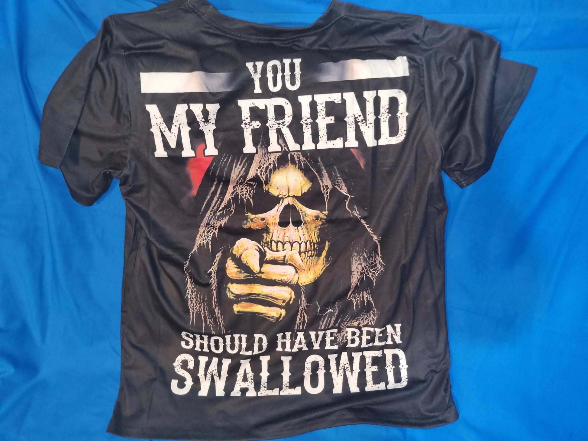 This comfortable cotton t-shirt features a vibrant design with the subtle reminder "You should of been swallowed". An ideal addition to any wardrobe, the lightweight fabric is perfect for everyday wear.