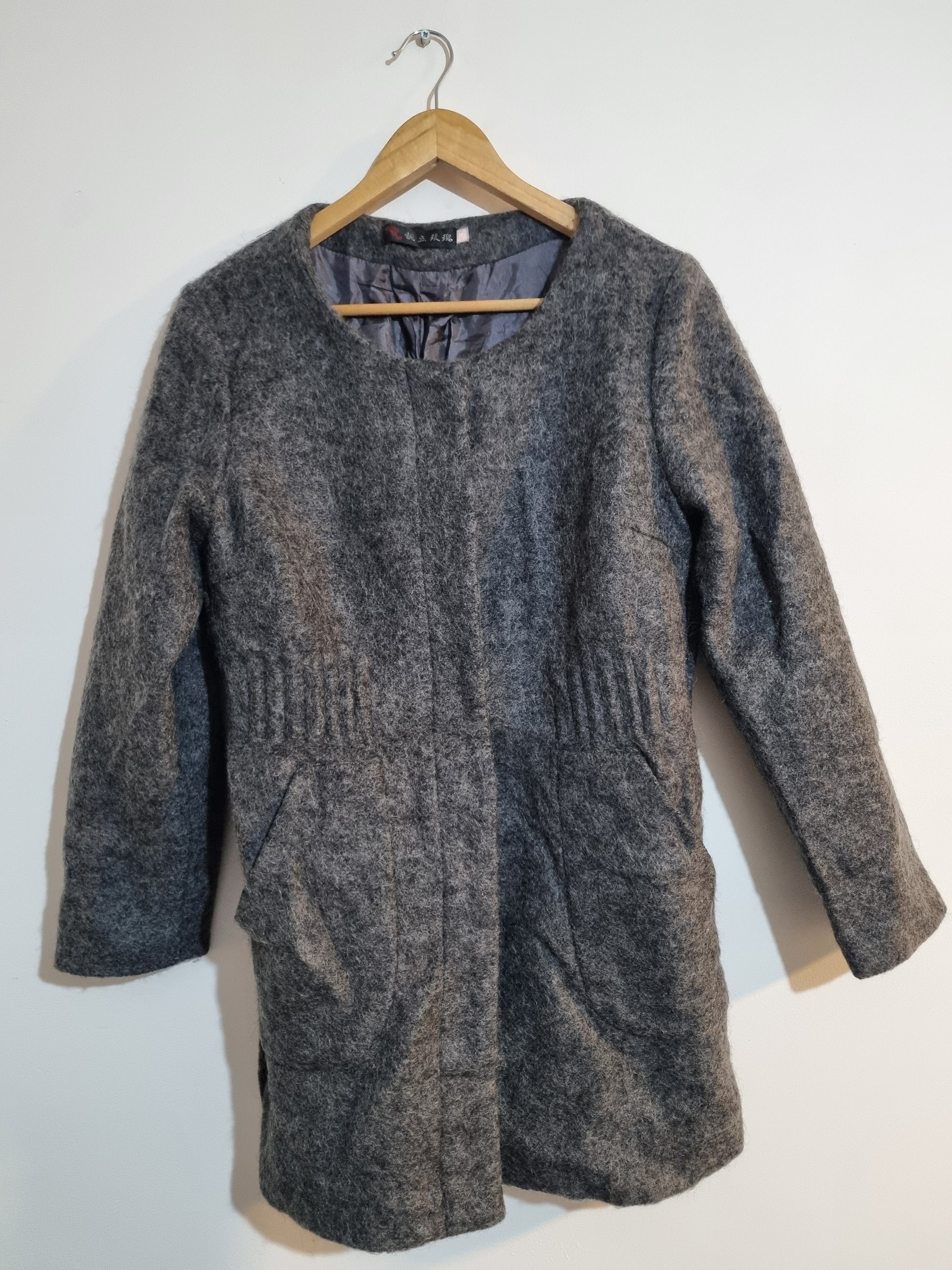 This women's grey coat is designed to keep you warm with its thick material. Perfect for the colder months, this coat is both stylish and functional. Its thick design provides excellent insulation, making it a must-have for your winter wardrobe.
