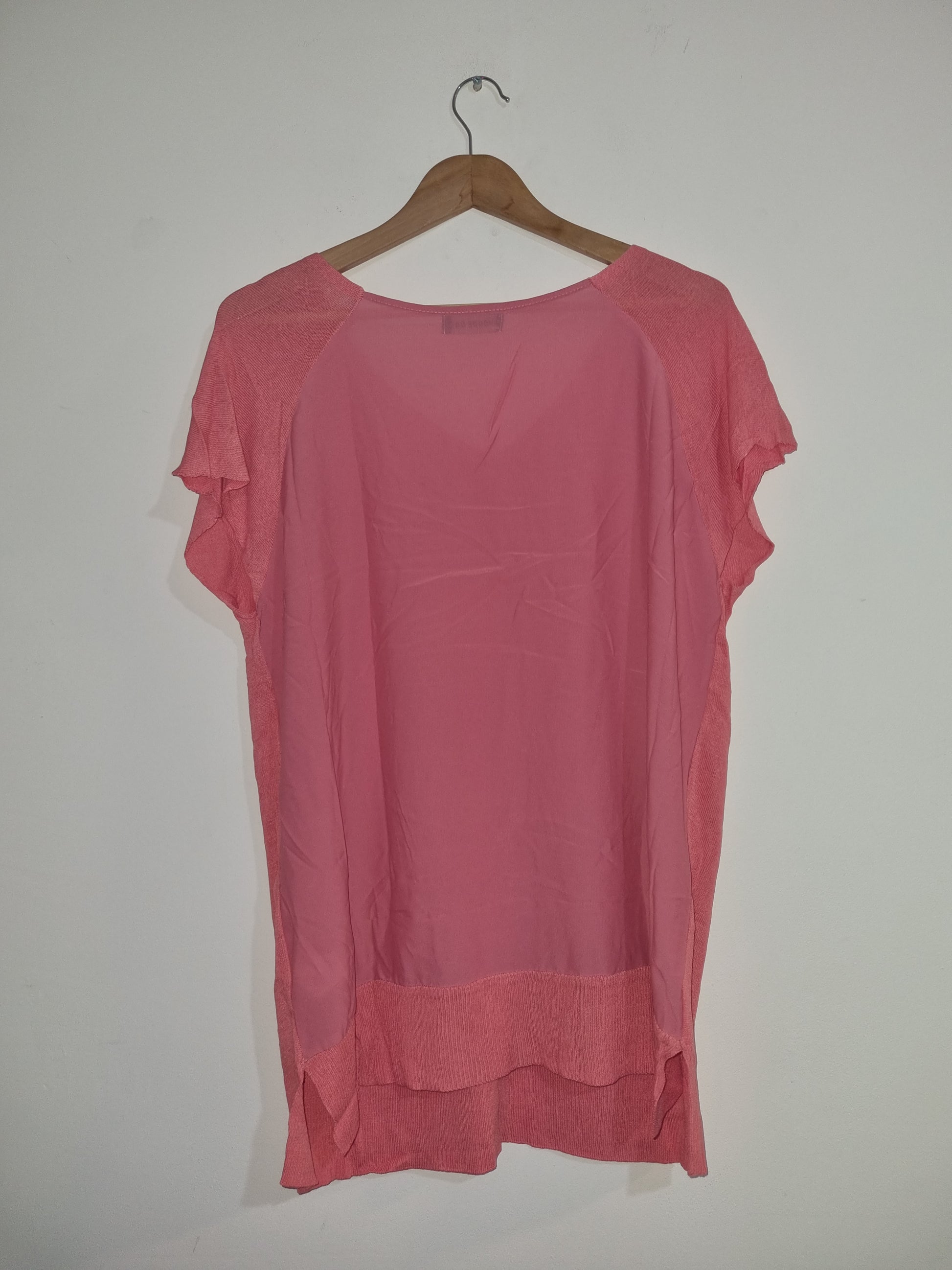 This women's XLarge pink sweater is both lightweight and sleeveless, providing a comfortable and versatile option for your wardrobe. Its lightness allows for easy layering and its sleeveless design adds a modern touch. Stay cozy and stylish with this must-have piece.