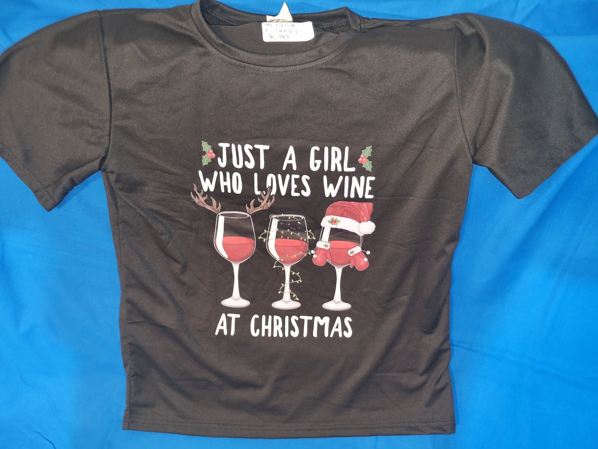 A fun holiday-inspired t-shirt for women is the perfect addition to any wardrobe. With the phrase 'Just a girl who loves wine at Christmas' this t-shirt is sure to make you stand out from the crowd. Soft and breathable cotton fabric ensures maximum comfort.