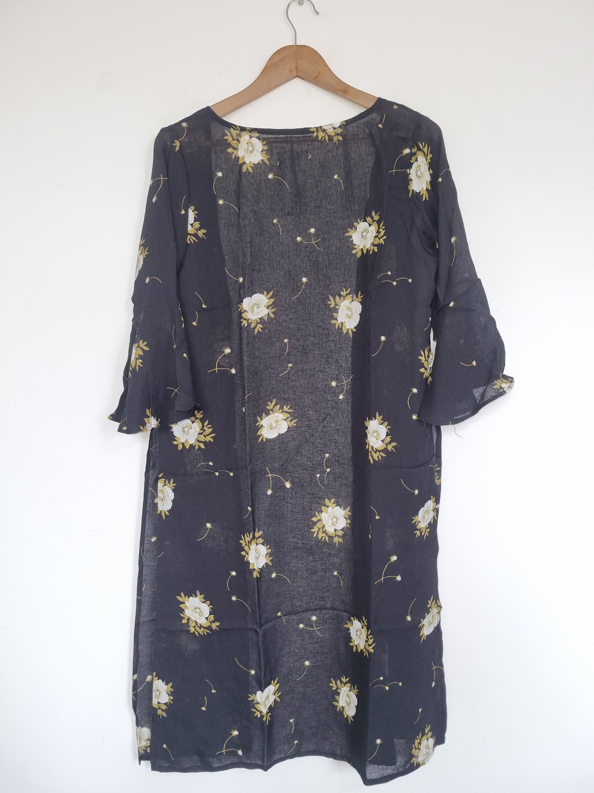 This lightweight floral gown is perfect for any formal occasion. Its light material allows for comfort and ease of movement, ensuring you can look and feel your best all night. Stay cool, both in temperature and style, with this elegant black gown.